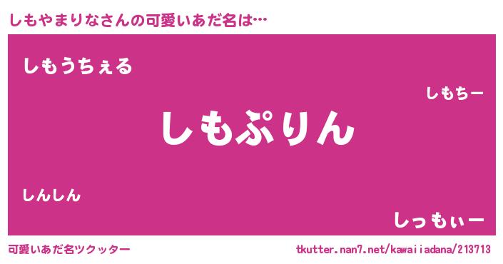 | 恥ずかしいあだ名 | 『シモヤマリナデラックス』『しもっちょ』 |