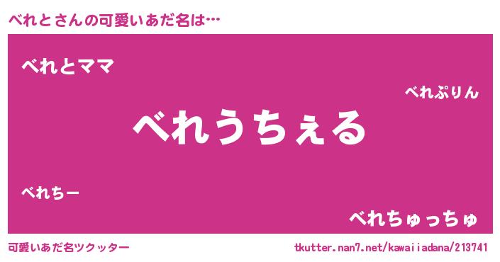 | 男性向けラノベタイトル風あだ名 | 『Re:べれとから始める異世界生活』 |