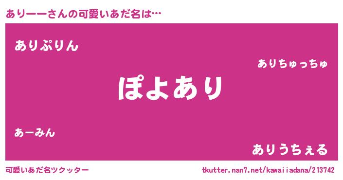 | 恥ずかしいあだ名 | 『アリーーデラックス』『ありっちょ』 |