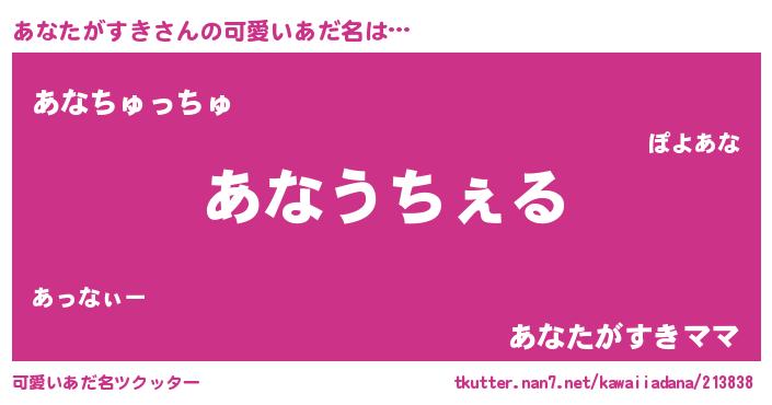 | ヒーロー風カッコイイあだ名 | 『最強戦士アナタガスキ』『仮面アナダー』 |