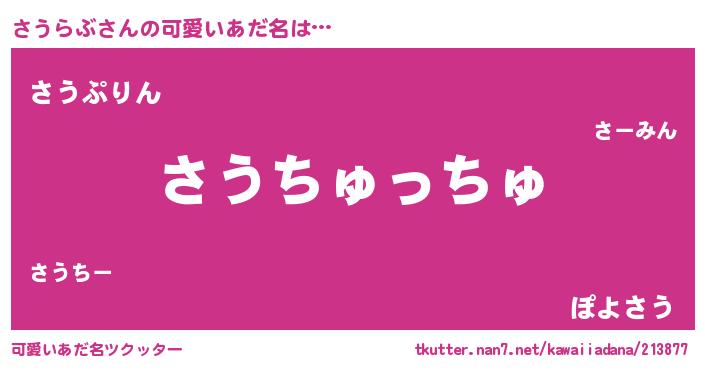 | 女子向けラノベタイトル風あだ名 | 『さうらぶ恋絵巻』『さうらぶ伯爵の花嫁』 |
