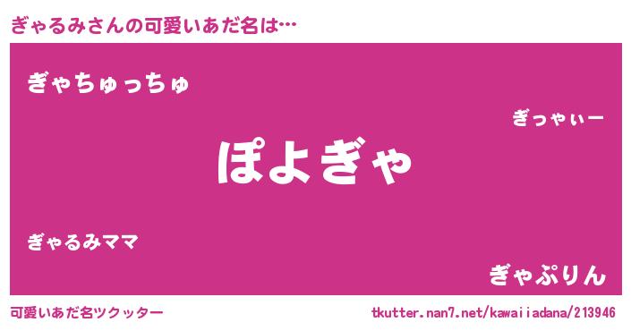 | ヘコむあだ名 | 『ぎゃ太郎』『ぎゃるみ(苦笑)』 |