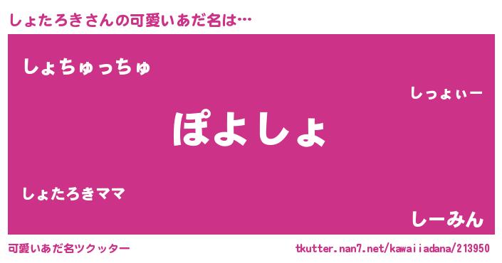 | ヘコむあだ名 | 『しょお』『しょたろき(遠い目)』 |