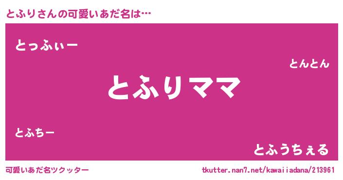 | 意味不明あだ名 | 『永久保存とふり』『自称とふり』 |