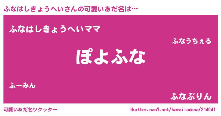 | ヘコむあだ名 | 『ふなはしきょうへい(小並感)』『ふなもー』 |