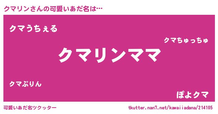 | ヒーロー風カッコイイあだ名 | 『ネオクマリン』『超時空戦士クマリン』 |