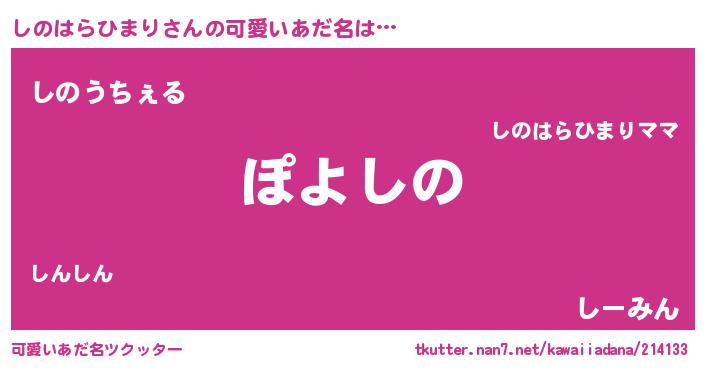 | ヘコむあだ名 | 『しのはらひまり(苦笑)』『しのにー』 |