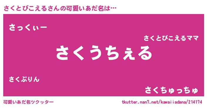 | 恥ずかしいあだ名 | 『サクトビコエルデラックス』『さくちん』 |