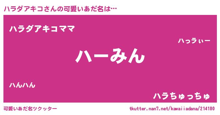 | ヘコむあだ名 | 『ハラダアキコ(小並感)』『ハラっちょ』 |