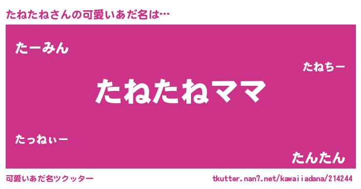 | 意味不明あだ名 | 『永久保存たねたね』『ペロリンたねたね』 |