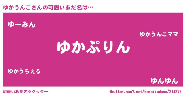 | 女子向けラノベタイトル風あだ名 | 『ゆかうんこの玉の輿計画!』 |