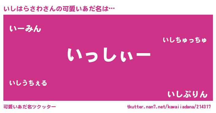 | 男性向けラノベタイトル風あだ名 | 『いしはらさわの嫁は女の子じゃないと思った?』 |