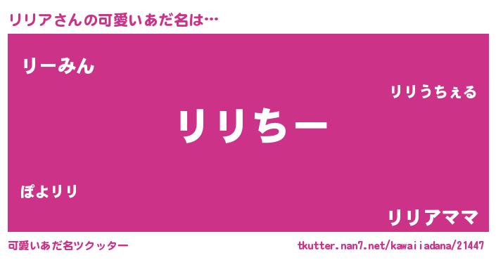 | 意味不明あだ名 | 『リリアフォーエバー』『永久保存リリア』 |