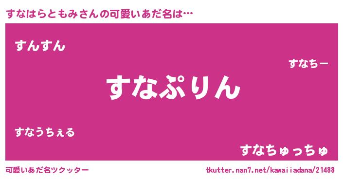 | ヘコむあだ名 | 『すなもー』『豆乳』『すなぷりん』 |