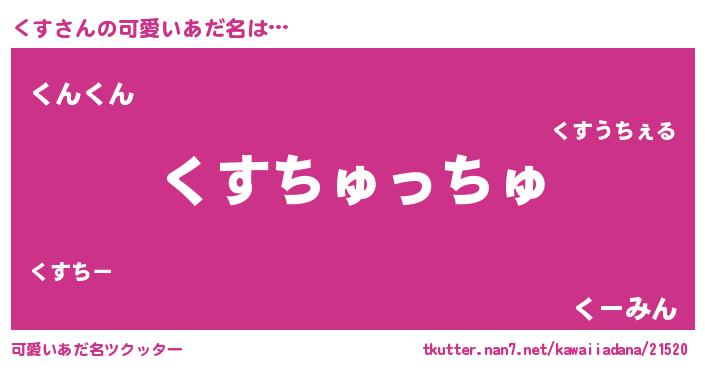 | 女子向けラノベタイトル風あだ名 | 『死神くすの再婚』『くすアンティーク』 |