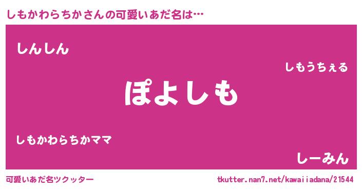 | 意味不明あだ名 | 『住所不定無職しもかわらちか(12歳)』 |