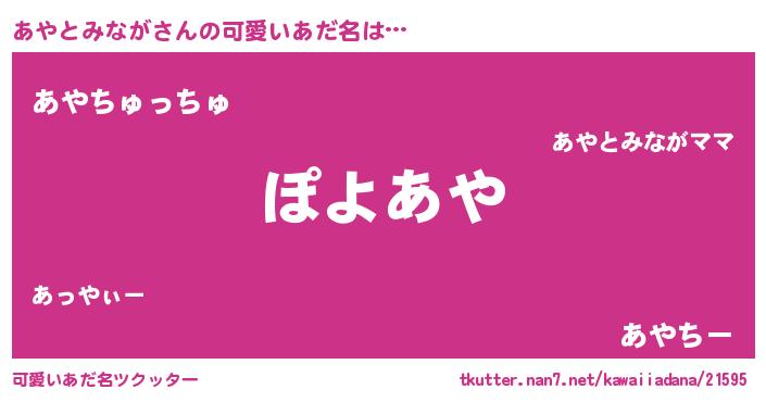 | 男性向けラノベタイトル風あだ名 | 『この素晴らしい世界にあやとみながを!』 |