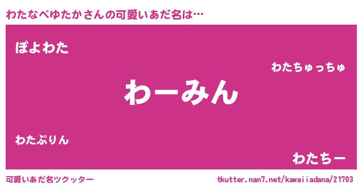 | ヒーロー風カッコイイあだ名 | 『仮面ワタダー』『ネオワタナベユタカ』 |