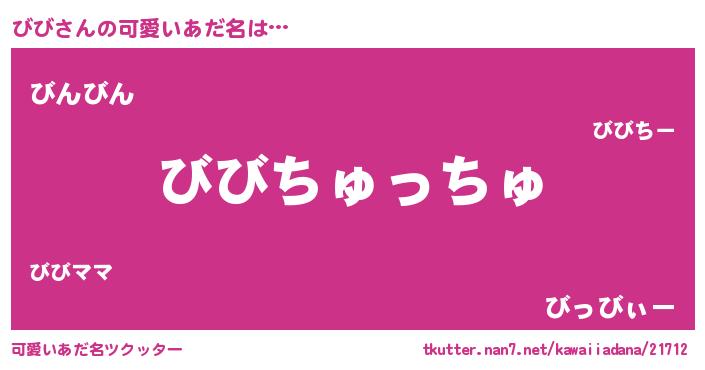 | 女子向けラノベタイトル風あだ名 | 『びび恋絵巻』『びびは平凡を望む』 |