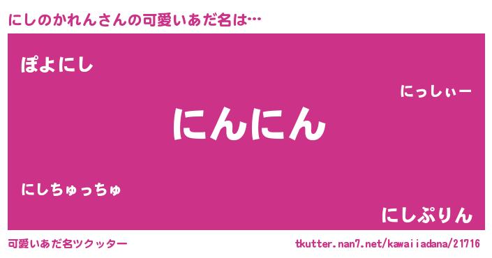 | ポケモン風あだ名 | 『ニシチュウ』『ニーシイ』 |