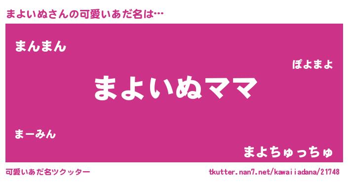| 意味不明あだ名 | 『永久保存まよいぬ』『ペロリンまよいぬ』 |