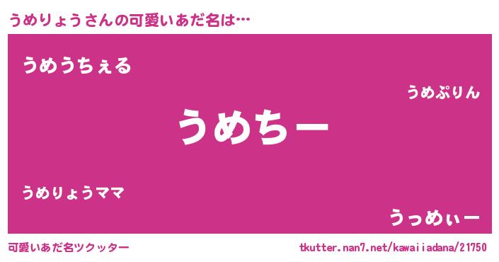 | 意味不明あだ名 | 『うめりょうフォーエバー』 |