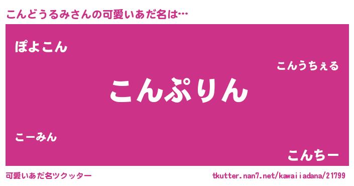 | 女子向けラノベタイトル風あだ名 | 『こんどうるみの玉の輿計画!』 |