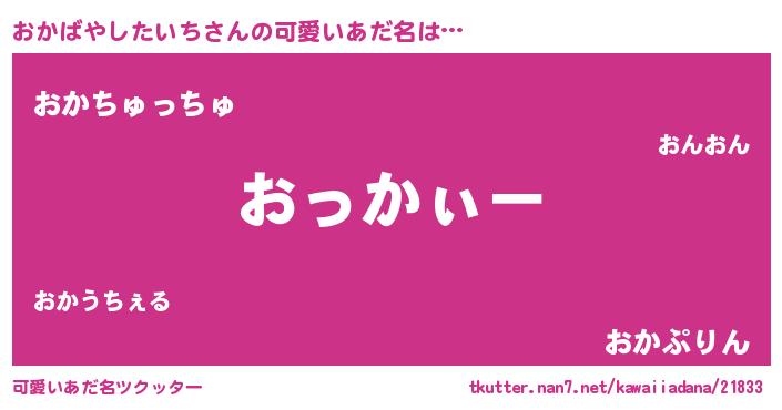 | 女子向けラノベタイトル風あだ名 | 『おかばやしたいち様がみてる』 |