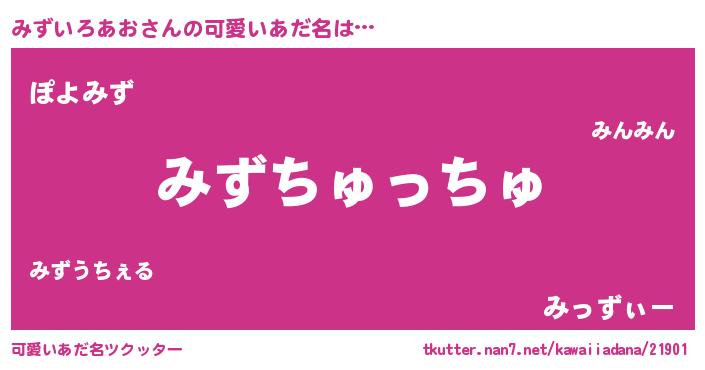| 男性向けラノベタイトル風あだ名 | 『みずいろあおに滅ぼされるだけの簡単なお仕事です』 |