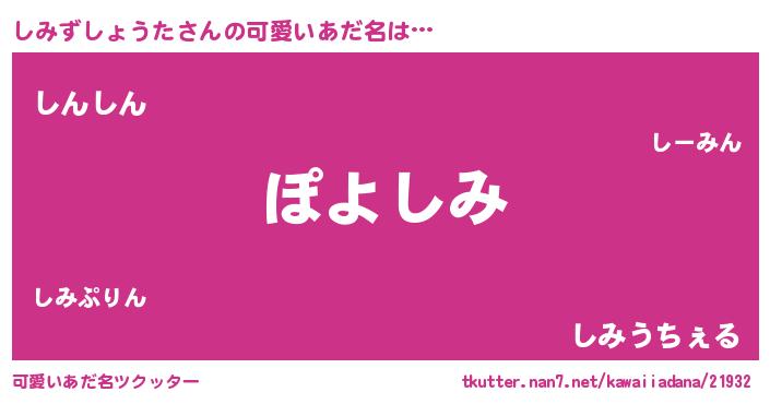 | 恥ずかしいあだ名 | 『プリティーしみずしょうた』『しみちん』 |