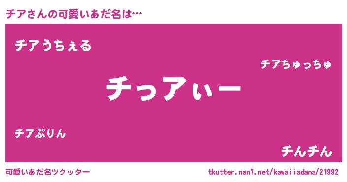 | 女子向けラノベタイトル風あだ名 | 『チア様がみてる』『死神チアの再婚』 |