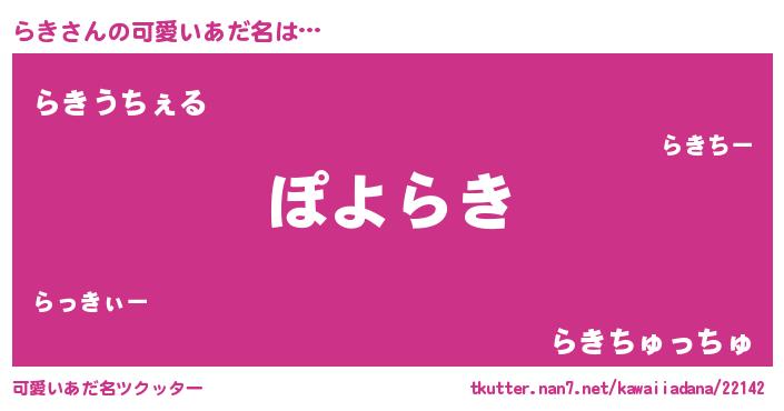 | ポケモン風あだ名 | 『ラーキイ』『ラキセウス』『ヒラキ』 |