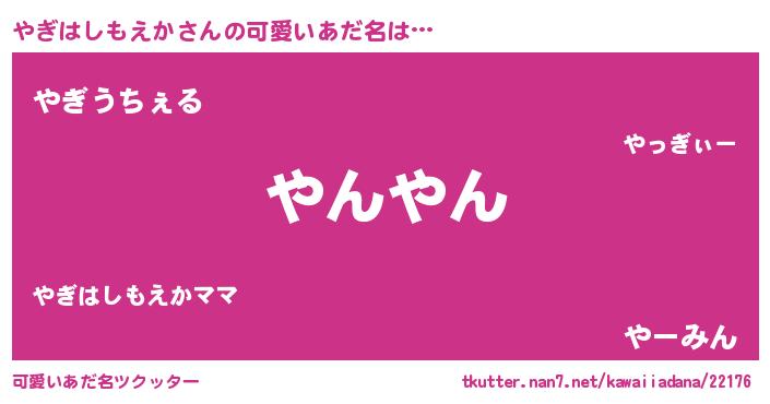 | 恥ずかしいあだ名 | 『プリティーやぎはしもえか』『やぎちん』 |