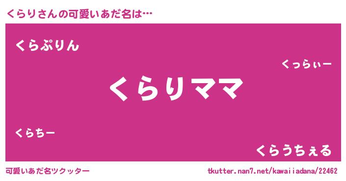 | 女子向けラノベタイトル風あだ名 | 『くらりの契約王妃』『くらり様がみてる』 |