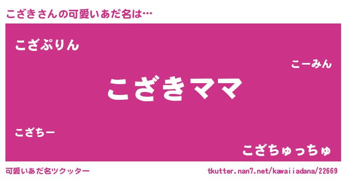 | 女子向けラノベタイトル風あだ名 | 『こざきの契約王妃』『こざき恋絵巻』 |