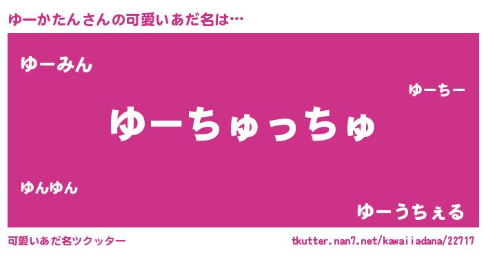 | 男性向けラノベタイトル風あだ名 | 『おまえをオタクにしてやるから、俺をゆーかたんにしてくれ! 』 |
