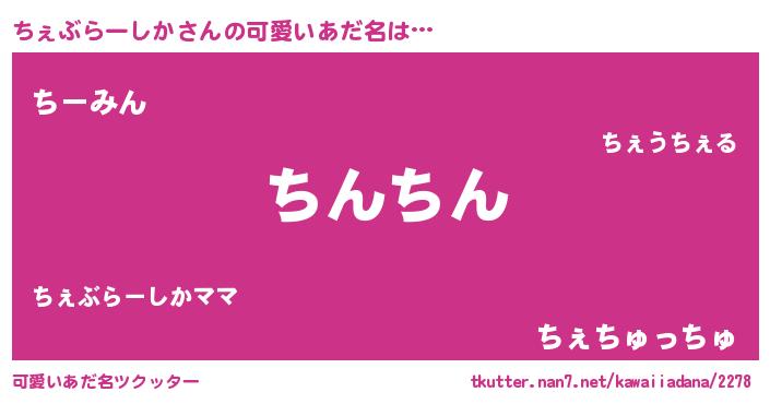 | 男性向けラノベタイトル風あだ名 | 『ちぇぶらーしかの憂鬱』 |