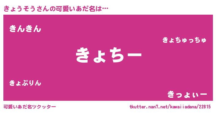 | 恥ずかしいあだ名 | 『きょっちょ』『プリティーきょうそう』 |