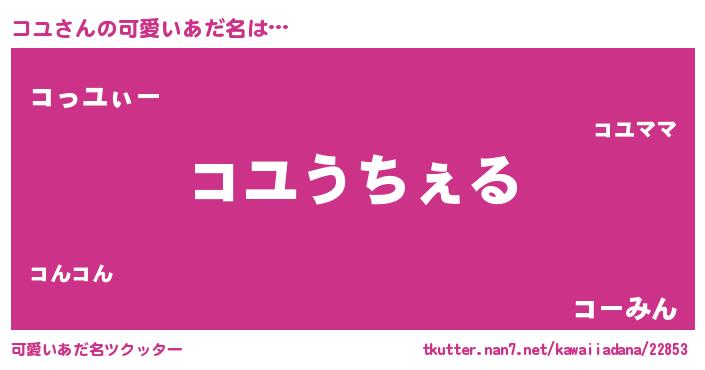 | 女子向けラノベタイトル風あだ名 | 『闇のコユ』『コユの卵を拾いまして』 |