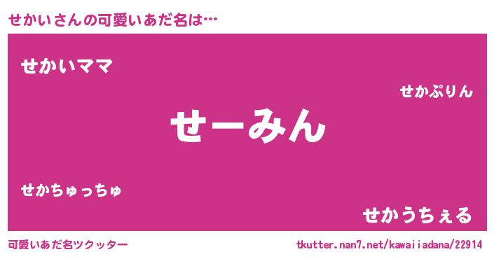 | 意味不明あだ名 | 『永久保存せかい』『自称せかい』 |