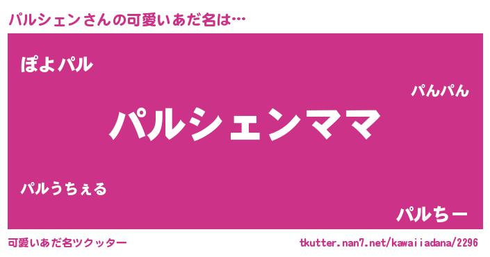 | 意味不明あだ名 | 『永久保存パルシェン』『自称パルシェン』 |