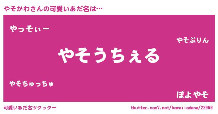 | 男性向けラノベタイトル風あだ名 | 『Re:やそかわから始める異世界生活』 |