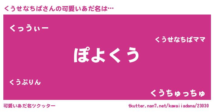 | ヘコむあだ名 | 『くうお』『くうせなちぱ(遠い目)』 |