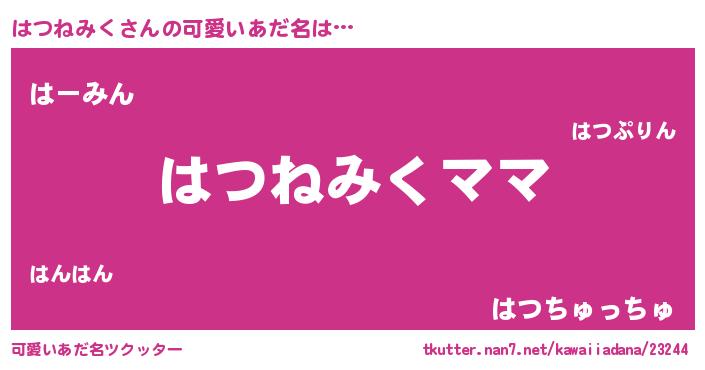 | 女子向けラノベタイトル風あだ名 | 『異世界で失敗しない100のはつねみく』 |