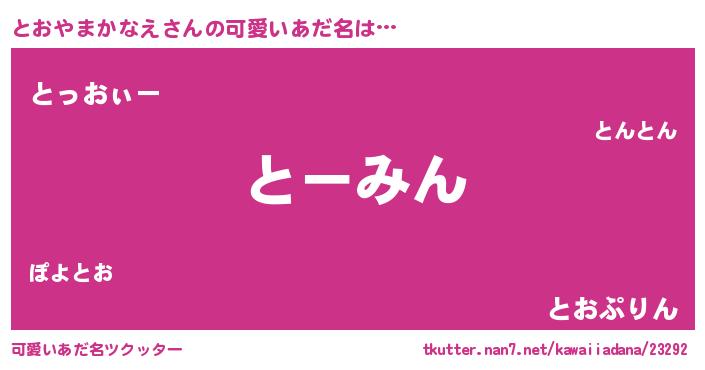 | 意味不明あだ名 | 『とにかく怪しいとおやまかなえ』 |