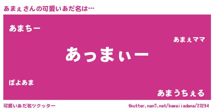 | 2回繰り返すあだ名 | 『にゅぷにゅぷ』『ああまま』 |