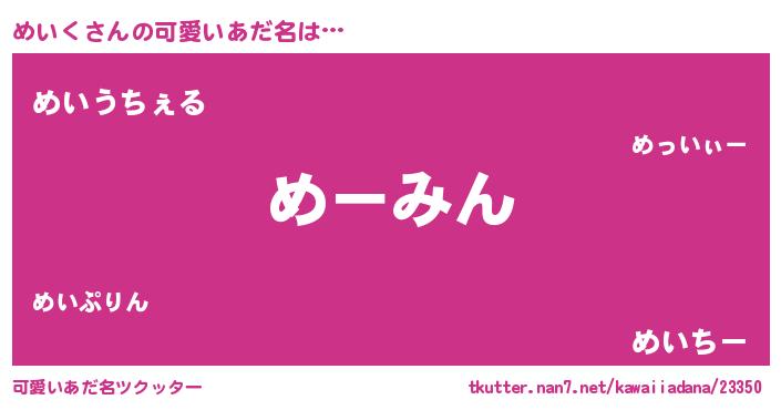 | 意味不明あだ名 | 『自称めいく』『めいくフォーエバー』 |