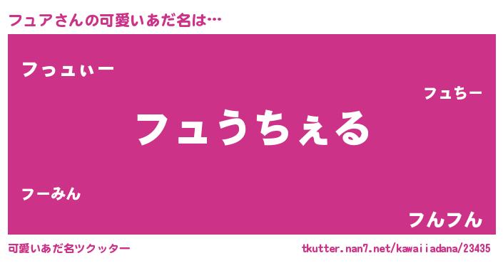 | ヘコむあだ名 | 『フュぷりん』『フュっふぃ~』 |