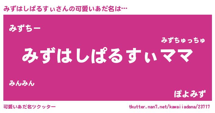 | 意味不明あだ名 | 『永久保存みずはしぱるすぃ』 |