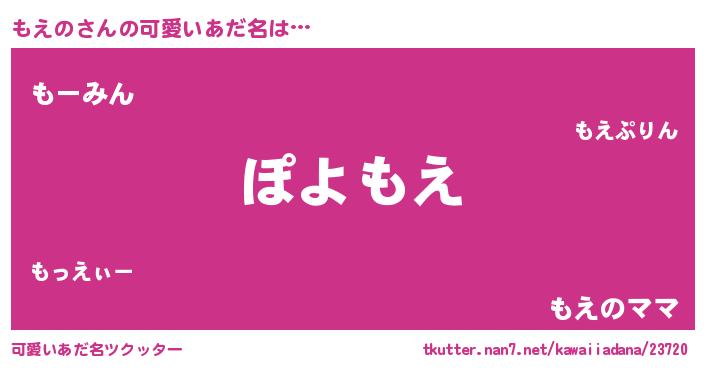 | ヘコむあだ名 | 『もえの(苦笑)』『もえ太郎』 |